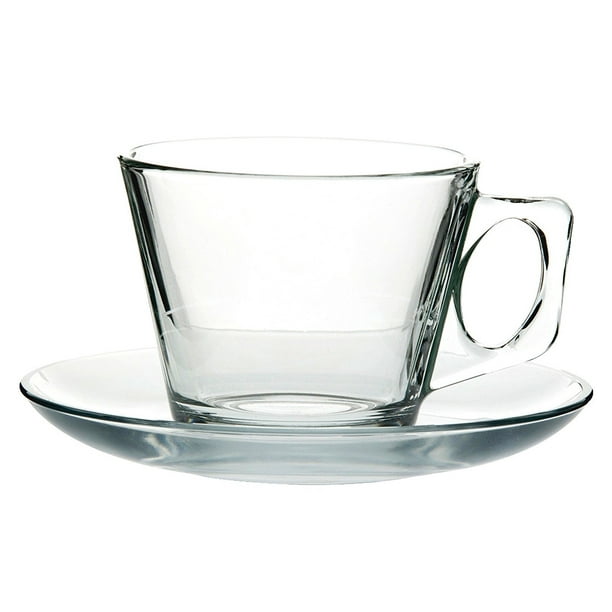 Pasabahce 97302 6 1 2 Oz Tea Coffee Cup With 5 31 Saucer Clear Glass Tea Cups With Matching Saucers Cup Saucer Set Of 12 6 Cups 6 Saucers Walmart Com